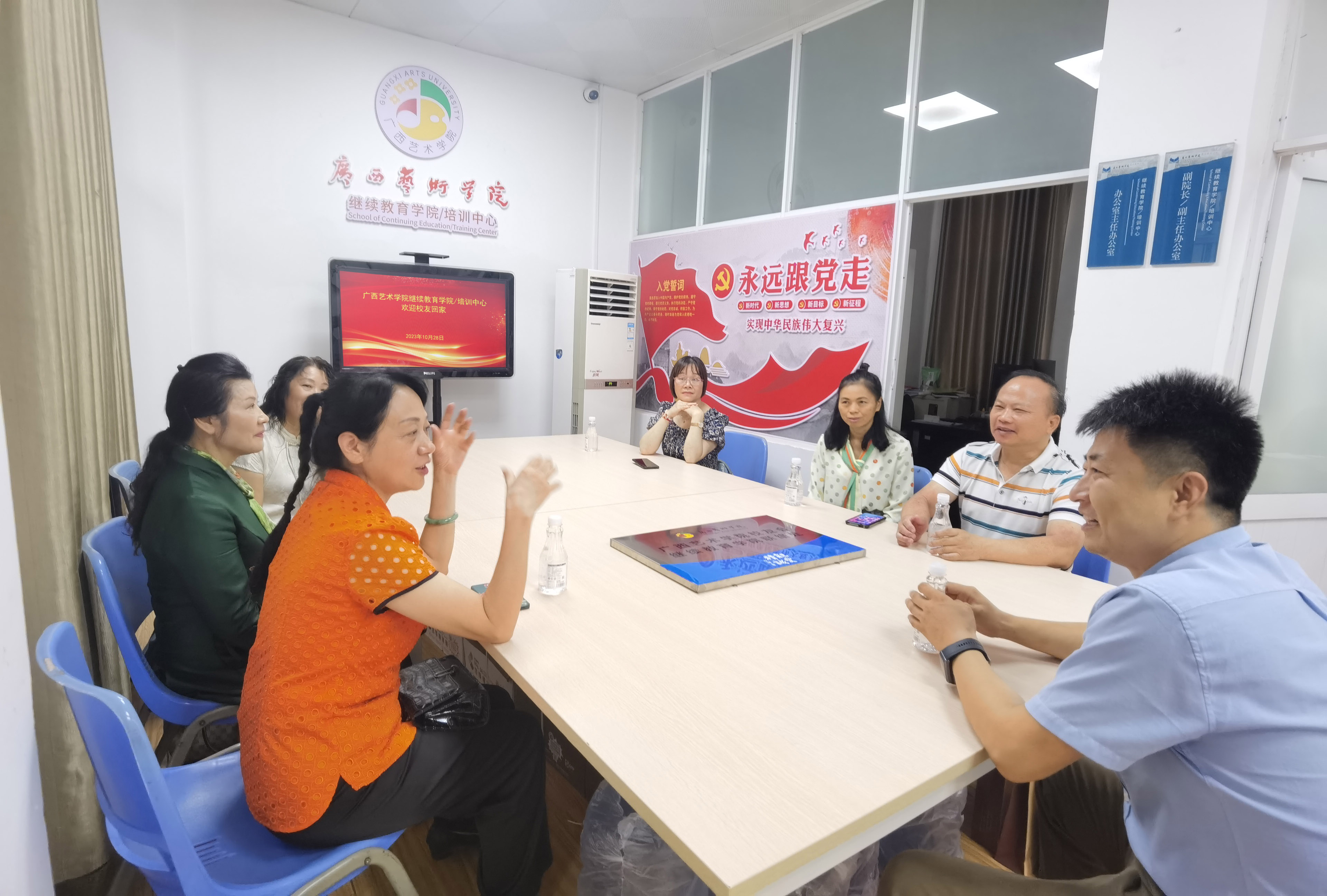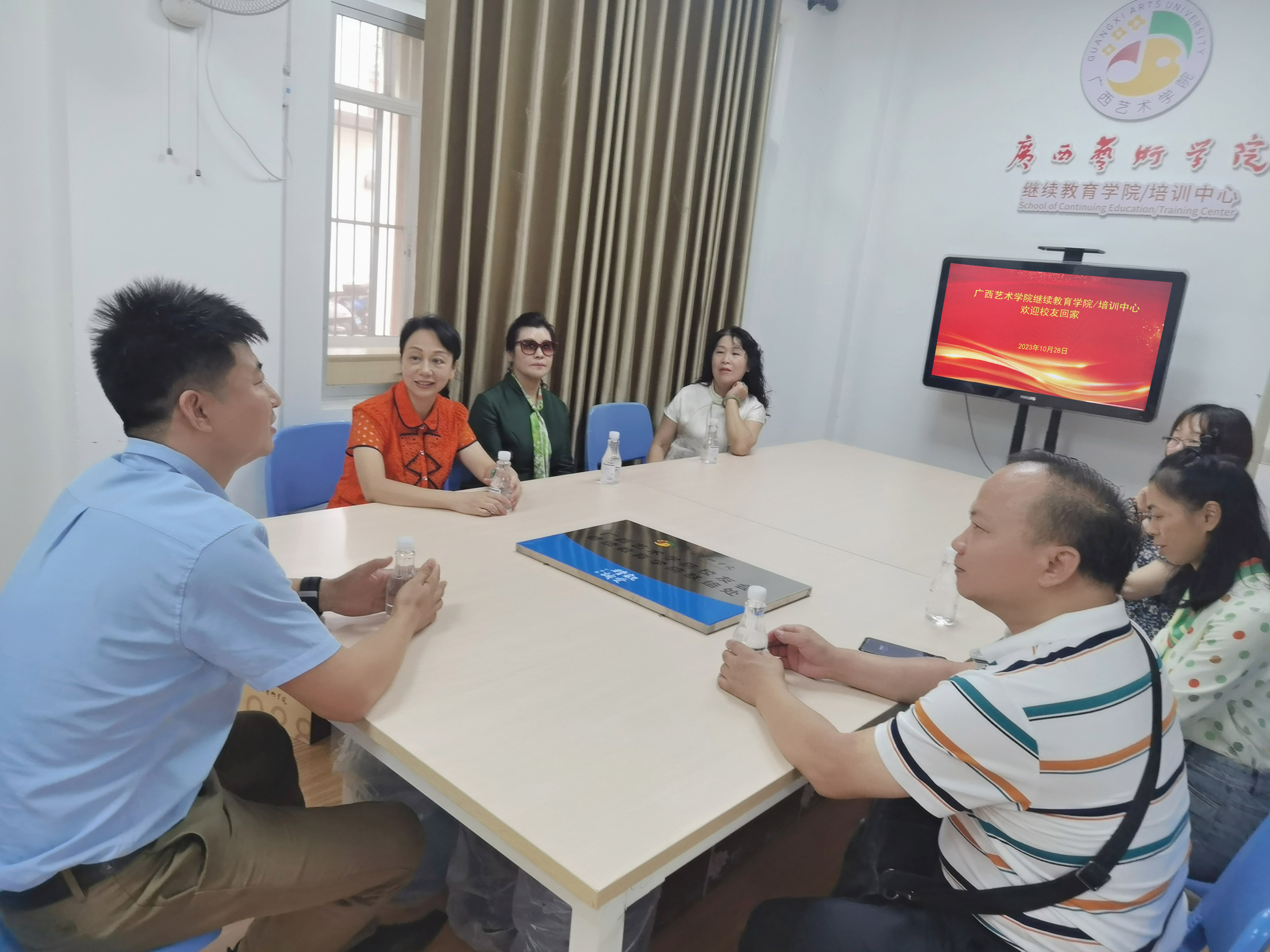 会议结束后,侯桂程为员工代表们赠送了校徽。员工代表们在公司工作人员的陪同下参观了广西民族音乐博物馆、中国画百米长卷《八桂壮美锦绣图》、漓江画派美术精品馆、365英国上市集团美术精品馆、校史馆以及书画展。
